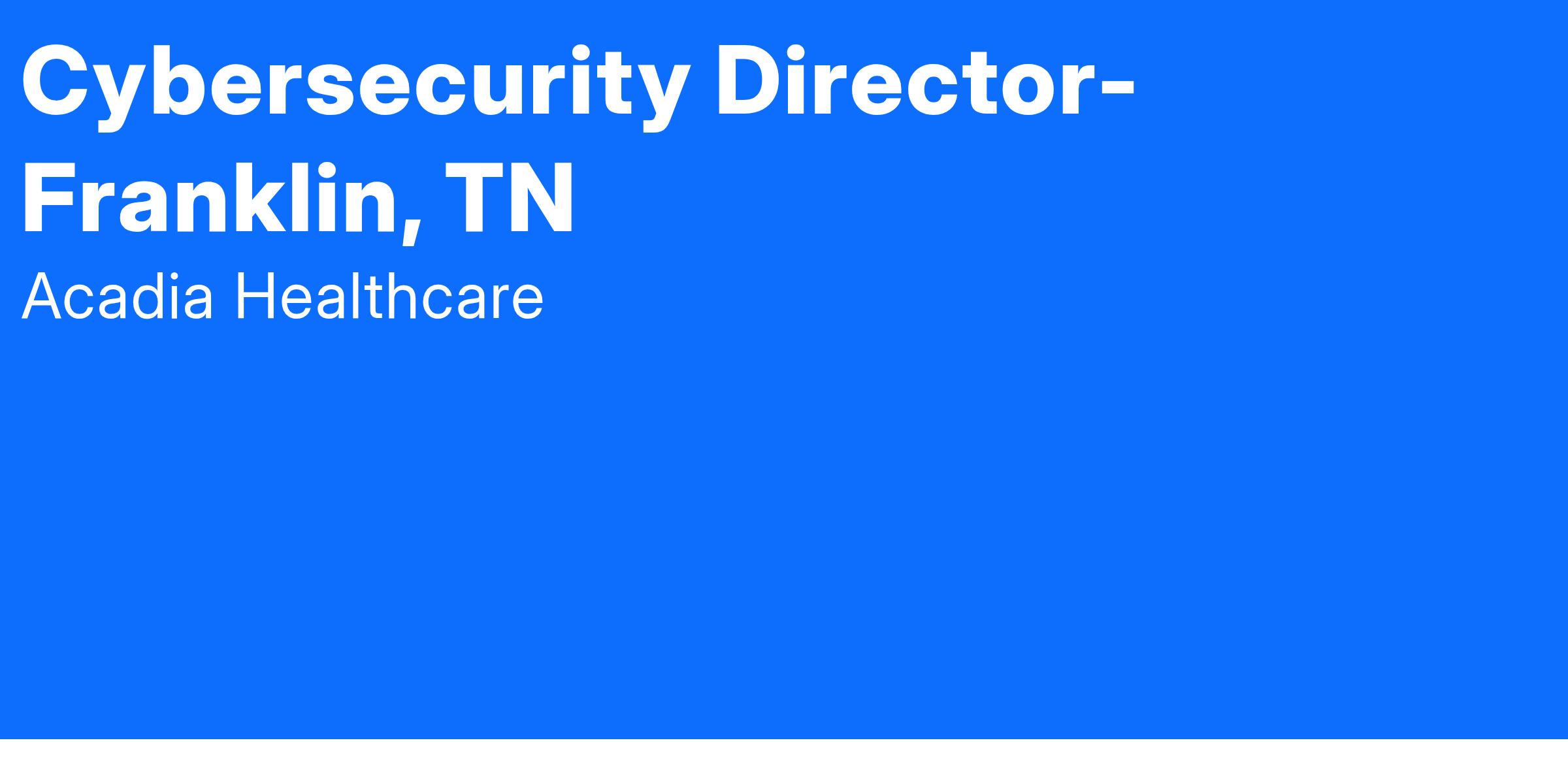 We are seeking an experienced Cybersecurity Director to join our team in Franklin, TN.