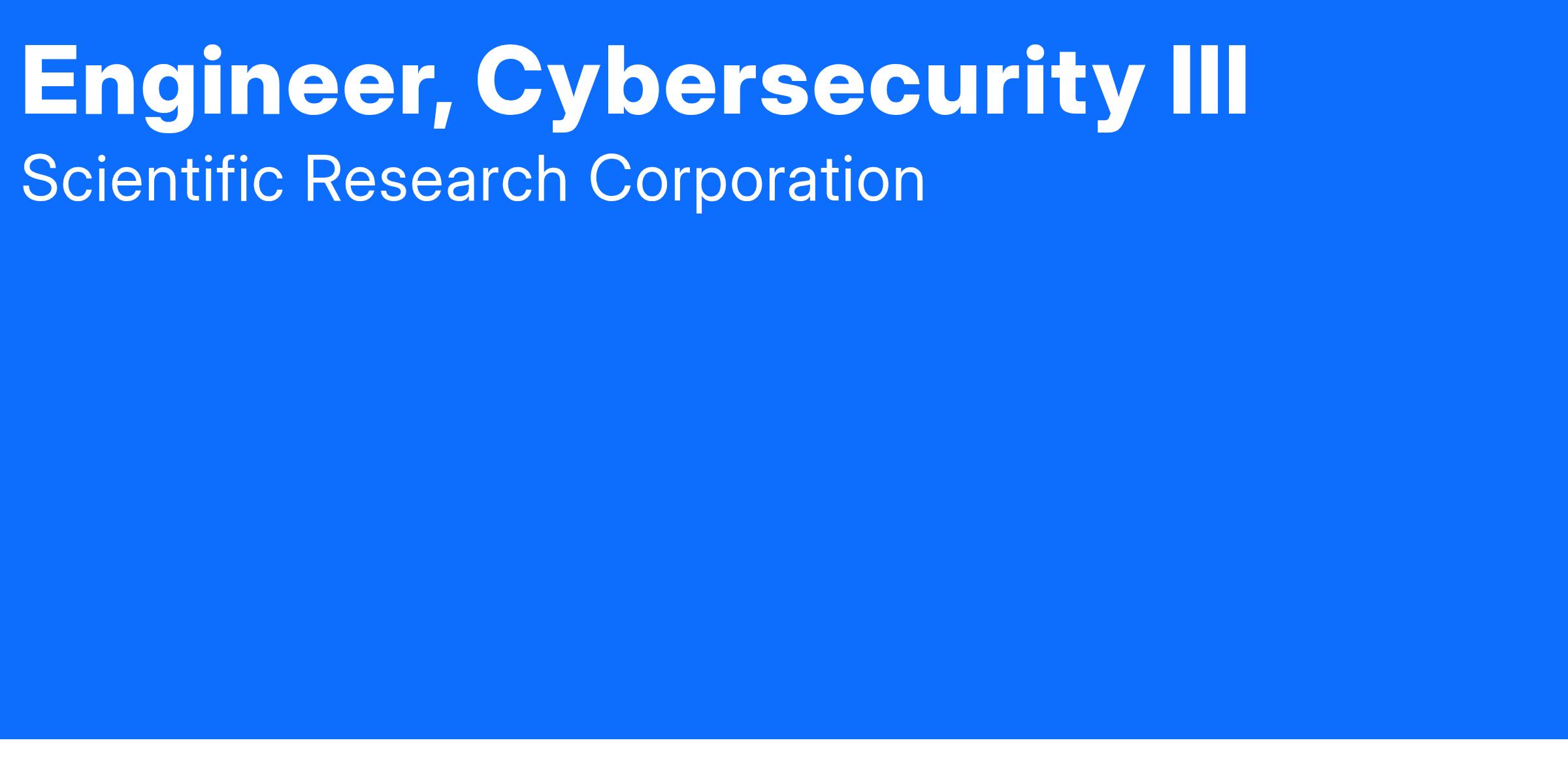 Scientific Research Corporation is an equal opportunity employer that does not discriminate in employment.