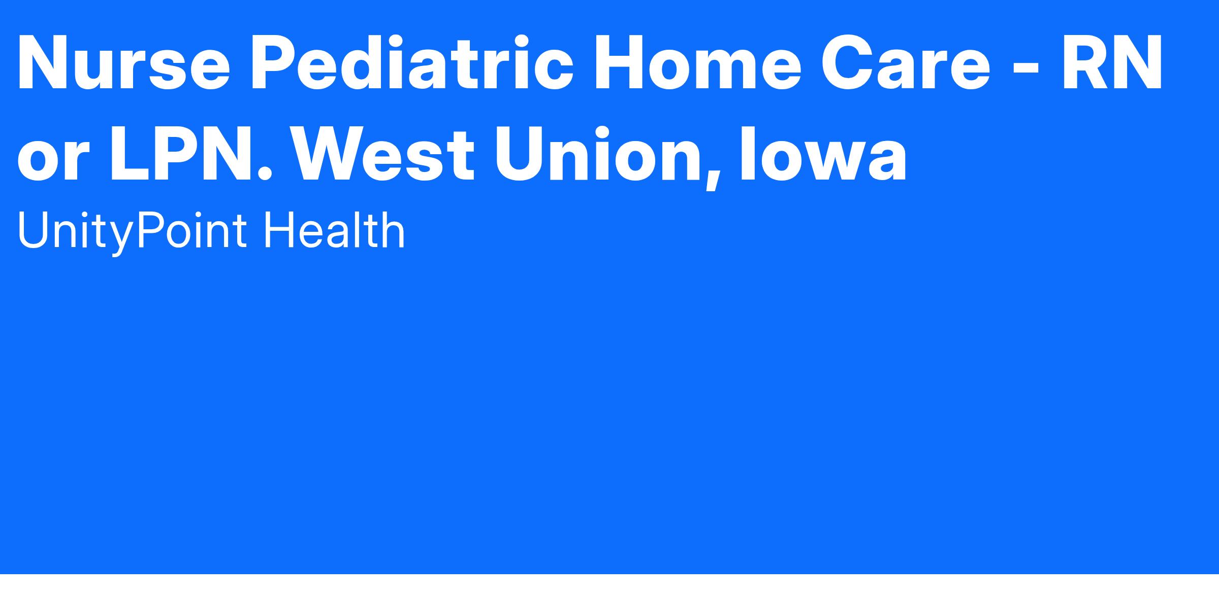 Join an amazing team at a nationally recognized Top Place to Work in Healthcare! As a Pediatric Home Care RN or LPN with UnityPoint at Home, you’ll work one-on-one with children and their families to develop the care plan that is right for them. With full- and part-time openings, you have the flexibility to choose the schedule that best fits your life. Our pediatric nurses make it possible for patients to receive the care they need where they’re most comfortable – in their homes