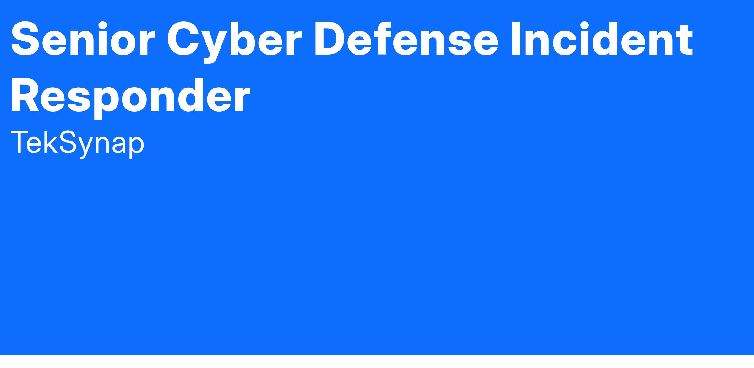 We are seeking a Senior Cyber Defense Incident Responder to join our team supporting a government customer.