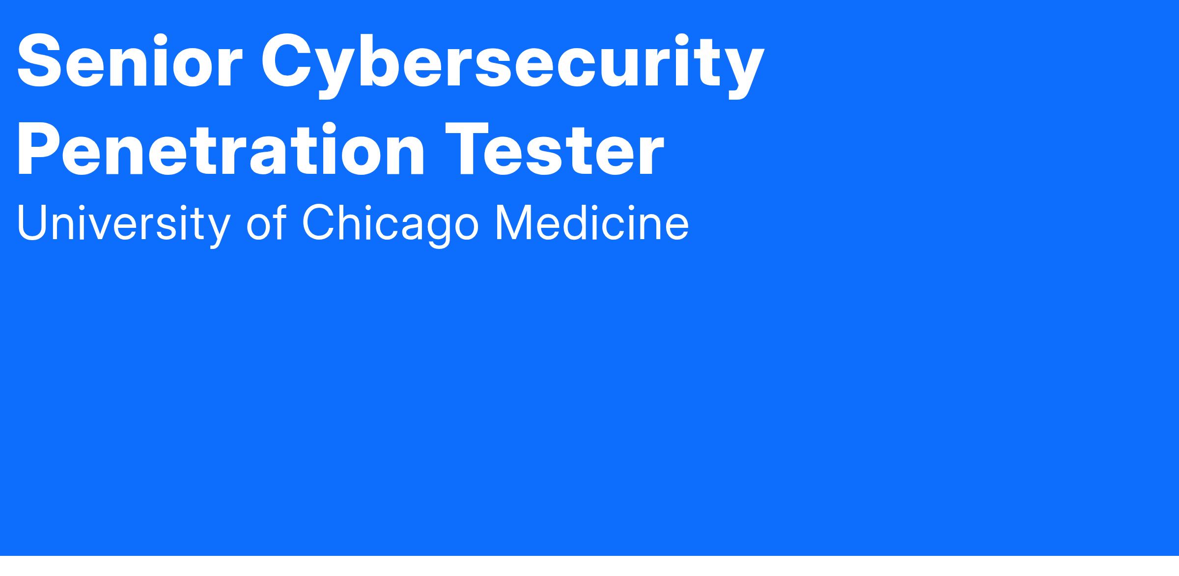Join a world-class academic healthcare system, UChicago Medicine, as a Senior Cybersecurity Penetration Tester in our Information Security department. This is a remote, work from home opportunity and you may be based outside of the greater Chicagoland area.